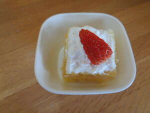 <本日の自園給食> わかめごはん ホイコーロー はんぺんとチーズの包み揚げ ブロッコリー ぶどうゼリー
