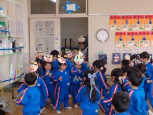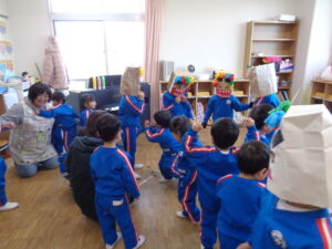 今日は節分!手作りのお面も準備して、いざ豆まき!