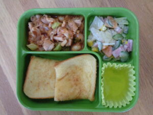 <本日のワンダー給食> メープルフレンチトースト ポークビーンズ キャベツとハムのごまドレサラダ パインゼリー