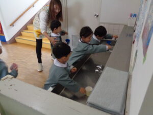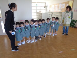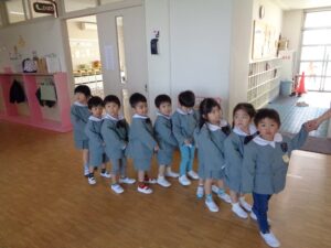 年少さんはみんなで繋がって園内を探険しましたよ!