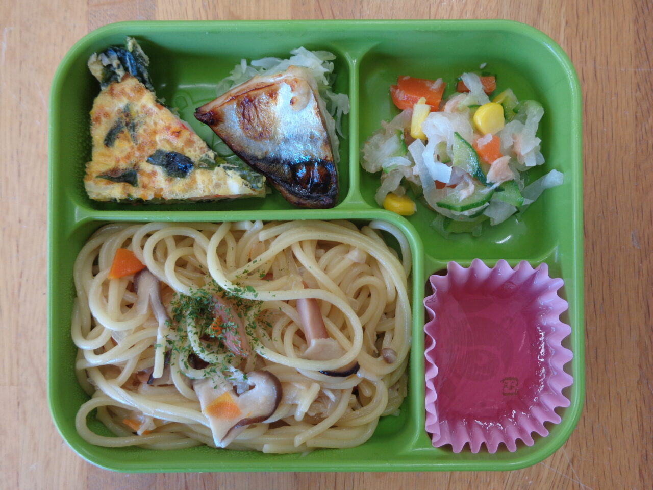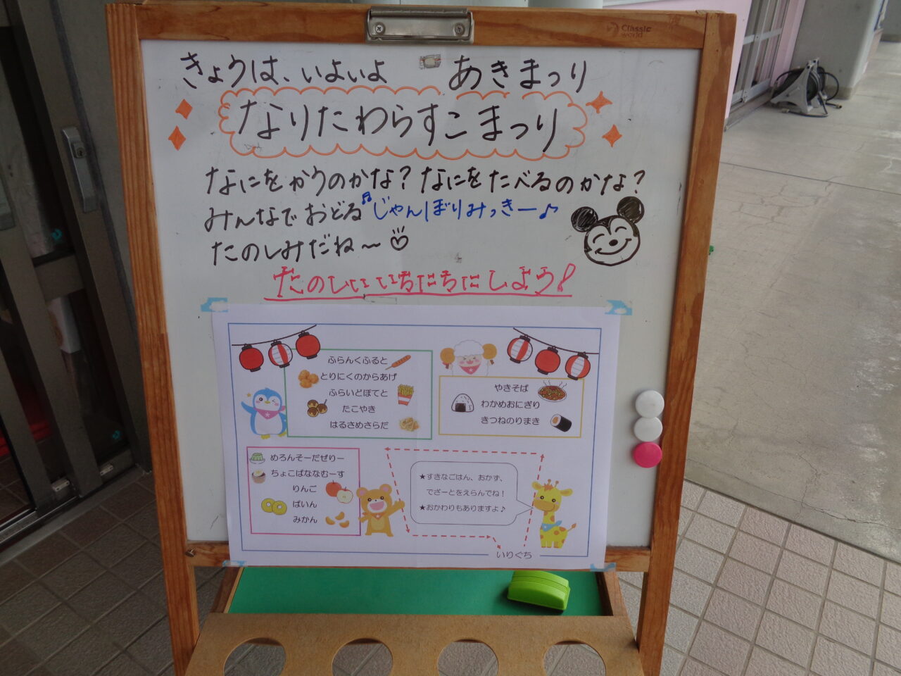 今日は秋まつり🍁 バイキング給食の日でした! 食べたいものを自分で選んで食べました! <秋まつりバイキングメニュー> わかめおにぎり きつねのり巻き 焼きそば フランクフルト 鶏肉の唐揚げ フライドポテ
