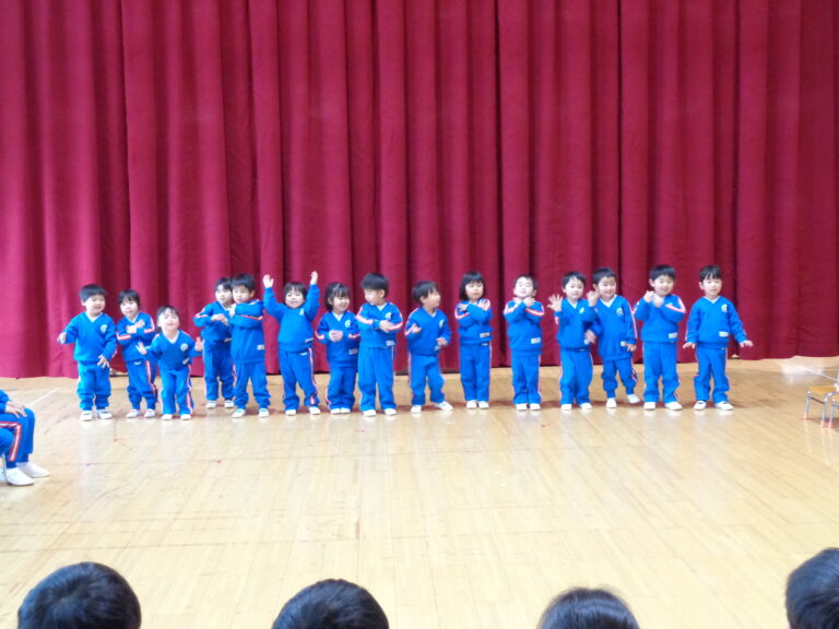 いっぱい優しくしてくれた憧れの年長さんに楽しんでもらおうと、プレ年少さん、年少さん、年中さんが出し物を披露し、感謝とお祝いのメッセージを伝えました。 先ずはプレ年少さんから! ♪きんらきらぽんを踊りました! 『年長さんい […]